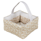 Καλαθάκι καλλυντικών από την εταιρεία Κόσμος του Μωρού σε μπεζ χρώμα με λευκές λεπτομέρειες και μοντέρνο σχέδιο. Κατάλληλο για να εξοπλίσετε το έπιπλο της αλλαξιέρας με αποθηκευτικό χώρο για τις κρέμες και τα μωρομάντηλα του μωρού σας. Η εξωτερική του επένδυση είναι από 100% βαμβακερό ύφασμα και η γέμιση από πολυεστερική βάτα για να είναι σταθερό. Πλένεται στο πλυντήριο στους 30 βαθμούς.