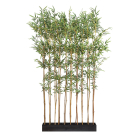 Τεχνητά δέντρα μπαμπού ύψους 180εκ. από την εταιρεία New Plan. Το φύλλωμα τους είναι πράσινο και η γλάστρα μαύρη. Διαθέτουν φυσικά καλάμια μέσα από τα οποία ξεπροβάλλουν εκατοντάδες μικρά φύλλα δίνοντας μια νότα φυσικού περιβάλλοντος. Είναι κατασκευασμένα από πολυαιθυλένιο εκτός από τα φύλλα που είναι από πολυεστερικό ύφασμα. Τα κλαδιά τους είναι στιβαρά και εύκαμπτα ώστε να μπορείτε να διαμορφώσετε εσείς ως έναν βαθμό το άνοιγμα τους. Η μοναδική φροντίδα που απαιτείται είναι το σκούπισμα τους με ένα πανί περιστασιακά. Αποτελούν ιδανική επιλογή για όλους τους εσωτερικούς χώρους όπως το σαλόνι, τη τραπεζαρία, τη κουζίνα, το γραφείο, ή τη βεράντα. Επίσης, είναι κατάλληλα και για επαγγελματικούς χώρους όπως καφέ, μπαρ, καταστήματα. Μπορεί να χρησιμοποιηθεί και σε εποχιακές διακοσμήσεις όπως γάμοι βαφτίσεις κλπ. Ιδανική επιλογή για να διακοσμήσετε τον χώρο σας χαρίζοντάς του μία αίσθηση τροπικού κλίματος. Δεν είναι βραδύκαυστα, διαθέτουν πιστοποιητικό ανθεκτικότητας UV και δεν χρειάζονται συναρμολόγηση.