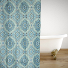 Κουρτίνα μπάνιου υφασμάτινη σε διάσταση 180x180 από την εταιρεία San Lorentzo. Έχει πετρόλ χρώμα με γεωμετρικό σχέδιο. Είναι κατασκευασμένη από 100% πολυεστερικό αδιαβροχοποιημένο ύφασμα. Διαθέτει βαρίδι στο κάτω μέρος. Προστατεύει το μπάνιο από τυχόν νερά κατά την διάρκεια του ντους σας. Στην συσκευασία περιλαμβάνονται οι 12 κρίκοι κρεμάσματος.