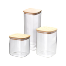 Βάζο κουζίνας σε σετ 3 τεμαχίων, κατασκευασμένα από γυαλί. Διαθέτουν καπάκι από bamboo σε φυσικό χρώμα και δακτυλίδι σιλικόνης που σφραγίζει τα δοχεία. Ιδανικά για να τοποθετήσετε μέσα ζυμαρικά, όσπρια ή ότι άλλο θέλετε. Χωρητικότητα: 700ml, 1lt, 1.5lt.