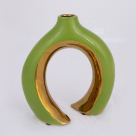 Διακοσμητικό βάζο από την εταιρεία Estheti σε λαχανί χρώμα με χρυσές λεπτομέρειες και μοντέρνο σχέδιο. Είναι κατασκευασμένο από κεραμικό υλικό. Μπορεί να χρησιμοποιηθεί για να τοποθετήσετε μέσα λουλούδια ή μόνο του σαν διακοσμητικό. Τοποθετήστε το στο σαλόνι, την τραπεζαρία ή σε οποιοδήποτε άλλο σημείο για να το διακοσμήσετε.