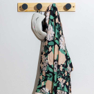 Κρεμάστρα τοίχου από την εταιρεία εstia. Είναι κατασκευασμένη από ξύλο πεύκου σε φυσική απόχρωση με μαύρα γαντζάκια. Τοποθετείται στον τοίχο με βίδες. Μπορείτε να την τοποθετήσετε σε έναν κενό τοίχο για να κρεμάτε τα πανωφόρια ή για να διακοσμήσετε τον χώρο σας.