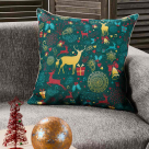 Διακοσμητική μαξιλαροθήκη με χριστουγεννιάτικο σχέδιο σε πετρόλ χρώμα και κόκκινες-κίτρινες-γαλάζιες λεπτομέρειες από την εταιρεία Whitegg. Κατασκευασμένη από ύφασμα 100% polyester. Ιδανική για να εμπλουτίσει την εορταστική ατμόσφαιρα σε οποιονδήποτε χώρο του σπιτιού σας.