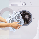 Δίχτυ παπουτσιών για το πλυντήριο, από την εταιρεία Alpina. Είναι κατασκευασμένο από ύφασμα σε λευκό χρώμα και έχει φερμουάρ. Διαθέτει λαβή για να μεταφέρεται και να κρεμιέται. Προστατεύει τα παπούτσια κατά το πλύσιμο, το ξέβγαλμα και το στύψιμο. Ανθεκτικό σε όλα τα προγράμματα πλύσης.