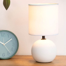 Πορτατίφ κομοδίνου σε λευκή απόχρωση και μίνιμαλ σχέδιο. Έχει κεραμικό σκελετό και υφασμάτινο καπέλο. Διαθέτει καλώδιο 120εκ. για παροχή ρεύματος. Τύπος ντουί: 1xE14 και θέση για 1 λαμπτήρα έως 60W (δεν συμπεριλαμβάνεται).