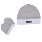 Βρεφικό σετ για νεογέννητο από την εταιρεία Nautica. Είναι μονόχρωμα σε γκρι χρώμα με λευκή λεπτομέρεια. Το ύφασμά τους είναι Jersey από 100% βαμβάκι πενιέ με πιστοποίηση Oekotex που εγγυάται ότι τα υφάσματα δεν έχουν επιβλαβείς ουσίες. Το σετ αποτελείται από βρεφικά γαντάκια και σκουφάκι κατάλληλα για βρέφη από 0 έως 1 μηνών. Σε συσκευασία σακούλα.