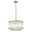 Φωτιστικό οροφής με μοντέρνο σχεδιασμό, από την εταιρεία Viokef. Είναι κατασκευασμένο από χρυσό μεταλλικό υλικό και ανάγλυφο διάφανο γυαλί. Υπάρχει δυνατότητα αυξομείωσης του συνολικού ύψους έως 150εκ. μέσω του καλωδίου ανάρτησης. Είναι κατάλληλο για εσωτερικό χώρο με IP20. Τύπος ντουί: 5xE14 και θέσεις για 5 λαμπτήρες έως 60W (δεν συμπεριλαμβάνονται). Συνδυάστε το με τα υπόλοιπα φωτιστικά της ίδιας συλλογής για ένα ολοκληρωμένο αποτέλεσμα στο χώρο σας.