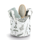 Καλάθι αποθήκευσης κατασκευασμένο από πολυεστερικό ύφασμα σε λευκό χρώμα με πράσινο σχέδιο. Μπορεί να τοποθετηθεί στην αλλαξιέρα, στο παιδικό δωμάτιο, στο μπάνιο, το playroom ή οποιοδήποτε χώρο του σπιτιού, που είναι απαραίτητη η αποθήκευση μικροπραγμάτων. Διαθέτει λαβές για εύκολη μεταφορά. Δώστε λύση στο πρόβλημα της τακτοποίησης, αναβαθμίζοντας αισθητικά τον χώρο σας. Συνδυάστε το με τα υπόλοιπα είδη του ίδιου σετ για ένα ολοκληρωμένο αποτέλεσμα στο χώρο σας.