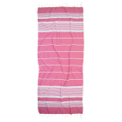 Πετσέτα - παρεό θαλάσσης σε ροζ χρώμα με λευκές λεπτομέρειες και ριγέ σχέδιο από την εταιρεία Viopros. Η μπροστινή της όψη είναι από 70% βαμβάκι - 30% polyester ενώ η πίσω από 100% microfiber. Διαθέτει διακοσμητικά κρόσια. Ιδανική καλοκαιρινή επιλογή καθώς είναι απορροφητική και στεγνώνει γρήγορα και εύκολα.