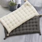 Μαξιλάρα σε γκρι χρώμα από την εταιρία Rythmos. Διαθέτει διακοσμητικά φουντάκια στις 4 γωνίες. Το εξωτερικό ύφασμά είναι βαμβακερό και το εσωτερικό γέμισμα πολυεστερική βάτα. Μπορεί να τοποθετηθεί σε παγκάκι, σε πολυθρόνα, κλπ, ή να χρησιμοποιηθεί σαν μαξιλάρα δαπέδου προσφέροντας έξτρα θέσεις στο χώρο σας.