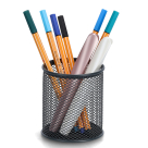 Μολυβοθήκη με διάτρητο σχέδιο και στρογγυλό σχήμα. Είναι κατασκευασμένη από μεταλλικό υλικό σε ανθρακί χρώμα. Ιδανική θήκη για να οργανώσετε μολύβια, στυλό, χάρακες και ό,τι άλλο θέλετε. Συνδυάστε το με τα υπόλοιπα προϊόντα της ίδιας συλλογής για ένα ολοκληρωμένο αποτέλεσμα.