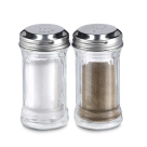 Δοχεία για αλάτι και πιπέρι με μοντέρνο σχεδιασμό. Είναι κατασκευασμένα από διάφανο γυαλί με καπάκια από ασημί ανοξείδωτο ατσάλι. Ιδανικό σετ αλατοπίπερου για τη μέση του τραπεζιού κατά τη διάρκεια του γεύματος.