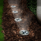 Ηλιακά σποτ καρφωτά, εξωτερικού χώρου, σε σετ 4 τεμαχίων από την εταιρεία Grundig. Είναι κατασκευασμένα από πλαστικό και ανοξείδωτο υλικό σε μαύρο και ασημί χρώμα. Μπορούν να τοποθετηθούν στον κήπο, την αυλή ή την βεράντα μέσα στο χώμα. Έχουν 4 SMD λαμπτήρες led με ψυχρό λευκό φως. Το καθένα τροφοδοτείται από μία μπαταρία AAΑ Ni-MH 1,2V, που περιλαμβάνεται, με χωρητικότητα 600mAh. Κατά τη διάρκεια της ημέρας, η ηλιακή ενέργεια επαναφορτίζει την εσωτερική μπαταρία μέσω του ενσωματωμένου πάνελ και το βράδυ ανάβει αυτόματα. Διαθέτει διακόπτη On/Off. Μετά από πλήρη φόρτιση έχει αυτονομία 6-8 ωρών. Το μίνιμαλ στυλ του θα διακοσμήσει και θα φωτίσει τον κήπο και τους εξωτερικούς χώρους του σπιτιού ή του εξοχικού σας.