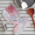 Γάντι και πιάστρα κουζίνας σε εκρού απόχρωση και ροζ λεπτομέρειες από την εταιρία Melinen. Το ύφασμα είναι από 100% microfiber. Χρησιμοποιήστε τα για να αποφεύγονται τα ανεπιθύμητα καψίματα.