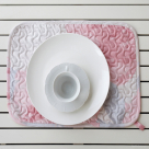 Σουπλά φαγητού σε εκρού απόχρωση και ροζ λεπτομέρειες από την εταιρία Melinen. Το ύφασμα είναι από 100% microfiber. Χρησιμοποιείται για το φαγητό και για να προστατεύσει επιφάνειες, όπως το τραπέζι, το πάσο, κλπ.