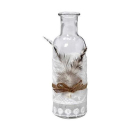 Διακοσμητικό μπουκάλι της εταιρείας Espiel κατασκευασμένο από γυαλί, με λευκό διακοσμητικό ύφασμα και κορδέλα με φτερό. Ιδανικό για να τοποθετηθεί και να διακοσμήσει την τραπεζαρία, το τραπεζάκι σαλονιού ή τον μπουφέ.
