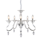 Φωτιστικό οροφής - πολυέλαιος της εταιρείας Aca Decor σε vintage στυλ. Είναι κατασκευασμένο από μέταλλο σε ασημί απόχρωση και διάφανο ακρυλικό υλικό. Φέρει διακοσμητικά διάφανα κρυσταλλάκια. Υπάρχει δυνατότητα αυξομείωσης του συνολικού ύψους έως 166εκ. μέσω του καλωδίου και της αλυσίδας ανάρτησης. Το καλώδιο είναι κατασκευασμένο από διάφανο PVC. Τύπος ντουί: 6xE14 και θέσεις για 6 λαμπτήρες έως 40W έκαστος (δεν συμπεριλαμβάνονται).