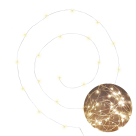 Διακοσμητική γιρλάντα με 20 micro-led φωτάκια λευκού φωτός. Είναι κατασκευασμένη από χαλκό και PVC. Λειτουργεί με 2 μπαταρίες AA LR6, οι οποίες δεν περιλαμβάνονται. Το συνολικό μήκος του καλωδίου είναι 240εκ. Ιδανική γιρλάντα για να τοποθετηθεί σε μία γυάλα και να κάνει την διακόσμηση του χώρου σας ξεχωριστή.