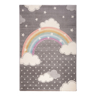 Μηχανοποίητο χαλί 200x290 από τη σειρά Yolo της εταιρείας Βιοκαρπέτ σε γκρι απόχρωση με ουράνιο τόξο και συννεφάκια. Φέρει εντυπωσιακό παιδικό σχέδιο σε μοντέρνο στυλ. Ανθεκτικό χαλί στην σκληρή καθημερινή καταπόνηση από το παιδικό παιχνίδι. Είναι κατασκευασμένο με ανεξίτηλα frise νήματα από 100% πολυπροπυλένιο. Το βάρος του χαλιού είναι 2.900gsm, ενώ η πυκνότητά του ανέρχεται στους 288.000 κόμπους/τ.μ. Η απαλή και ανάγλυφη επιφάνεια του χαλιού σε συνδυασμό με το πέλος ύψους 13mm, εξασφαλίζουν μία μοναδική αίσθηση στο πάτημα. Διαθέτει υφαντό υπόστρωμα, που προσδίδει αντοχή στο χρόνο και τις πλύσεις. Είναι αντιστατικό επομένως δεν μαγνητίζονται χνούδια, μικροσωματίδια και σκόνη στην επιφάνεια του χαλιού, ενώ το σκούπισμα με ηλεκτρική σκούπα είναι εύκολο και αποτελεσματικό. Οι πρώτες ύλες των χαλιών Yolo είναι αυστηρά επιλεγμένες, η επεξεργασία τους προστατεύει από αλλεργίες και μύκητες. Φέρουν την υπογραφή της εταιρείας Βιοκαρπέτ για άριστη ποιότητα και αξιοπιστία. *Είναι κατάλληλο για ενδοδαπέδια θέρμανση* ***Μέρος των εσόδων από τις πωλήσεις της παιδικής σειράς Yolo διατίθεται στο Make-A-Wish, (Κάνε-Μια-Ευχή Ελλάδος).***