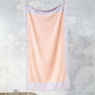 Πετσέτα θαλάσσης από την εταιρεία Nima με υφασμάτινη φάσα γεωμετρικού σχεδίου. Η σύνθεσή της είναι 100% βαμβάκι σε σομόν χρώμα και η περιμετρική φάσα είναι γκρι. Συνδυάστε το με το ασορτί τσαντάκι, και ολοκληρώστε την εμφάνισή σας για την παραλία.