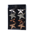 Χριστουγεννιάτικα στολίδια αστέρια 8 τεμαχίων σε ασημί και μπρονζέ αποχρώσεις με γκλίτερ. Είναι κατασκευασμένα από πολυπροπυλένιο. Συνδυάστε διαφορετικά σετ με στολίδια για μία μοναδική γιορτινή διακόσμηση του δέντρου σας.