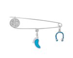 Παιδική παραμάνα φυλαχτό για αγόρι από ασήμι με κωνσταντινάτο πατούσα μωρού και πέταλο τύχης με σμάλτο