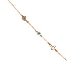 🔍 Παιδικό βραχιόλι από ρόζ επιχρυσωμένο ασήμι ε καρδιά μάτι και σταυρό