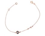 Διακριτικό βραχιόλι από ρόζ επιχρυσωμένο ασήμι 925 με μάτι και σταυρό