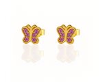 Αυτά τα χαριτωμένα παιδικά σκουλαρίκια σε σχήμα πεταλούδας είναι η τέλεια προσθήκη σε κάθε μικρή κοσμηματοθήκη! Κατασκευασμένα από ασήμι 925 και επιχρυσωμένα για φωτεινή εμφάνιση, διακοσμούνται με λαμπερά ροζ ζιργκόν που προσδίδουν παιχνιδιάρικη κομψότητα. Με καρφωτό κούμπωμα, είναι ιδανικά για άνετη και ασφαλή καθημερινή χρήση. Ένα κόσμημα γεμάτο χρώμα και φαντασία, ιδανικό για δώρο βάπτισης ή γενεθλίων!