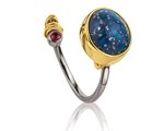 Δαχτυλίδι χειροποίητo από μαύρο πλατινωμένο ασήμι 925 με κόκκινο Quartz και lapis