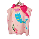 Παιδικό πόντσο σε σομόν χρώμα, με φούξια-τυρκουάζ λεπτομέρειες και σχέδιο γοργόνα από την εταιρεία Whitegg. Έχει πετσετέ υφή και είναι κατασκευασμένο από 100% microfiber με απορροφητικά νήματα, που το καθιστούν απαλό στην αφή και ανθεκτικό στη χρήση.