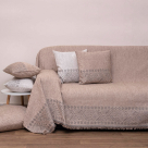 Ριχτάρι για τριθέσιο καναπέ σε μπεζ χρώμα με κρόσσια στο τελείωμα και φλοράλ σχέδιο σε καφέ-ανθρακί αποχρώσεις από την εταιρεία Viopros. Είναι κατασκευασμένο από 100% chenille με ζακάρ ύφανση που το καθιστά ιδανικό για τους χειμερινούς μήνες. Συνδυάστε το με τα υπόλοιπα είδη της ίδιας σειράς για ένα ολοκληρωμένο αποτέλεσμα.