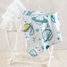 Σεντόνι για το λίκνο ή την καλαθούνα του μωρού σε λευκό χρώμα, με μπλε λεπτομέρειες και σχέδιο διάστημα από την εταιρεία Rythmos. Είναι κατασκευασμένο από 100% βαμβάκι που το καθιστά απαλό και ανθεκτικό. Συνδυάστε το με τα υπόλοιπα είδη της σειράς για ένα ολοκληρωμένο αποτέλεσμα στο βρεφικό δωμάτιο.