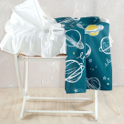 Σεντόνι για το λίκνο ή την καλαθούνα του μωρού σε πετρόλ χρώμα, με κίτρινες-λευκές λεπτομέρειες και σχέδιο διάστημα από την εταιρεία Rythmos. Είναι κατασκευασμένο από 100% βαμβάκι που το καθιστά απαλό και ανθεκτικό. Συνδυάστε το με τα υπόλοιπα είδη της σειράς για ένα ολοκληρωμένο αποτέλεσμα στο βρεφικό δωμάτιο.
