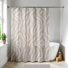 Πλαστική κουρτίνα μπάνιου σε μπεζ χρώμα, με εκρού λεπτομέρειες και animal print σχέδιο. Είναι κατασκευασμένη από 15% EVA και 85% από φιλικό προς το περιβάλλον ανθεκτικό υλικό PE. Το επιφανειακό φινίρισμα του υλικού δίνει ένα υδατοαπωθητικό αποτέλεσμα. Ιδανική για ντουζιέρα και μπανιέρα. Περιλαμβάνονται 12 κρίκοι κρεμάσματος.