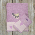 Σετ παιδικές πετσέτες μπάνιου από την εταιρεία Kocoon σε λιλά χρώμα, με κεντητό σχέδιο παιδική φιγούρα. Διαθέτουν υφασμάτινη φάσα. Η ποιότητά τους είναι από 100% βαμβάκι βάρους 380gsm, που τις καθιστά απαλές και απορροφητικές. Διατίθενται σε συσκευασία κουτί.