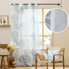 Κουρτίνα σε λευκό χρώμα με γκρι και πετρόλ tropical σχέδιο. Είναι κατασκευασμένη από ύφασμα βουάλ 100% polyester. Το ύφασμα είναι χαμηλής σκίασης που επιτρέπει σε άπλετο φως να μπει μέσα στο δωμάτιο. Στο επάνω μέρος έχει 8 τρουκς κρεμάσματος με διάμετρο 4cm. Συνδυάστε το χρώμα και το ύφος της κουρτίνας με τον χώρο σας και ανανεώστε την διακόσμησή του.