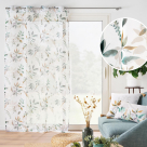 Κουρτίνα σε λευκό χρώμα με μπεζ και πράσινο tropical σχέδιο. Είναι κατασκευασμένη από ύφασμα βουάλ 100% polyester. Το ύφασμα είναι χαμηλής σκίασης που επιτρέπει σε άπλετο φως να μπει μέσα στο δωμάτιο. Στο επάνω μέρος έχει 8 τρουκς κρεμάσματος με διάμετρο 4cm. Συνδυάστε το χρώμα και το ύφος της κουρτίνας με τον χώρο σας και ανανεώστε την διακόσμησή του.