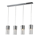 Φωτιστικό οροφής με ράγα της εταιρείας Aca Decor σε μοντέρνο στυλ. Είναι κατασκευασμένο από μέταλλο σε απόχρωση χρωμίου. Έχει 4 καπέλα που αποτελούνται από μέταλλο, διάφανο γυαλί και διακοσμητικούς κρυστάλλους εσωτερικά. Υπάρχει δυνατότητα αυξομείωσης του συνολικού ύψους έως 120εκ. μέσω των 4 διάφανων καλωδίων ανάρτησης. Τύπος ντουί: 4xE14 και θέσεις για 4 λαμπτήρες έως 60W έκαστος (δεν συμπεριλαμβάνονται).