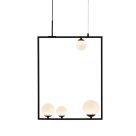 Φωτιστικό οροφής με ράγα της εταιρείας Aca Decor σε μοντέρνο στυλ. Έχει μεταλλικό σκελετό σε μαύρο ματ χρώμα και 4 λευκές γυάλινες μπάλες. Υπάρχει δυνατότητα αυξομείωσης του συνολικού ύψους έως 120εκ. μέσω του καλωδίου ανάρτησης. Διαθέτει μαύρη μεταλλική βάση τοποθέτησης. Τύπος ντουί: 4xG9 και θέσεις για 4 λαμπτήρες έως 28W έκαστος (δεν συμπεριλαμβάνονται).