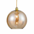 Φωτιστικό οροφής της εταιρείας Aca Decor σε μίνιμαλ στυλ. Είναι γυάλινο φιμέ στην απόχρωση κεχριμπαριού με χρυσές μεταλλικές λεπτομέρειες. Το καλώδιο υφασμάτινο. Τύπος ντουί: 1xE27 και θέση για ένα λαμπτήρα έως 40W (δεν συμπεριλαμβάνεται).