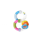 Μασητικό με πολύχρωμους κρίκους και κουδουνίστρα από την εταιρεία Kiokids. Αποτελεί έναν εκπληκτικό συνδυασμό μασητικού και κουδουνίστρας. Το μασητικό καταπραΰνει τα ερεθισμένα ούλα και ανακουφίζει τα βρέφη από τον πόνο στα δοντάκια κατά την περίοδο οδοντοφυΐας. Οι ήχοι που παράγονται από την κουδουνίστρα κεντρίζουν το ενδιαφέρον του μωρού διασκεδάζοντας το με τον πιο απλό και ασφαλή τρόπο. Έχει ιδανικό σχήμα για να μπορούν να το κρατούν τα μικρά χεράκια του μωρού σας. Διεγείρει τις αισθήσεις της όρασης, ακοής και γεύσης, ενώ συγχρόνως προάγει τις κινητικές δεξιότητες του βρέφους. Ιδανικό για αγοράκια και κοριτσάκια. Απαραίτητο το πλύσιμο του προϊόντος με νερό και σαπούνι πριν την πρώτη χρήση.