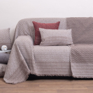 Ριχτάρι διπλής όψης για τον τριθέσιο καναπέ σε εκρού φόντο, μπεζ λεπτομέρειες και γεωμετρικό σχέδιο από την εταιρία Viopros. Είναι κατασκευασμένο από 100% ζακάρ chenille και διαθέτει διακοσμητικά κρόσια στο τελείωμα. Ιδανικό για τους χειμερινούς μήνες του χρόνου.