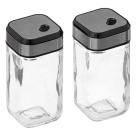Δοχεία για αλάτι και πιπέρι από διάφανο γυαλί με γκρι πλαστικό καπάκι. Έχουν χωρητικότητα 100ml. Το καπάκι διαθέτει 3 διαφορετικές ροές. Ιδανικό σετ αλατοπίπερου για τη μέση του τραπεζιού κατά τη διάρκεια του γεύματος.