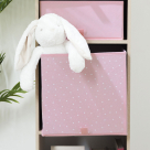 Κουτί αποθήκευσης για είναι πάντα τακτοποιημένο το παιδικό δωμάτιο. Εξωτερικά είναι υφασμάτινο σε ροζ χρώμα και σχέδιο αστέρια, κατασκευασμένο από πολυπροπυλένιο ενώ εσωτερικά έχει χαρτόνι για να στέκεται χωρίς να λυγίζει ή να πέφτει.