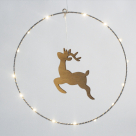 Χριστουγεννιάτικο κρεμαστό διακοσμητικό με φωτάκια Led της εταιρείας Aca Decor. Είναι κατασκευασμένο από μεταλλικό υλικό και ξύλο και διαθέτει σχοινί για να μπορεί να κρεμαστεί. Έχει 20 Led λαμπάκια που φωτίζουν όμορφα το χριστουγεννιάτικο ελαφάκι που είναι κατάλληλο να στολίσει χριστουγεννιάτικα όλους τους χώρους του σπιτιού. Λειτουργεί με 3 μπαταρίες AA LR6, οι οποίες δεν περιλαμβάνονται. Φέρει ενσωματωμένες πλακέτες Led συνολικής ισχύος 0.90Watt, λευκού θερμού φωτός (3000K). *Το φωτιστικό απεικονίζεται με αναμμένο φως ( θερμό λευκό).*