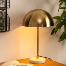 Επιτραπέζιο φωτιστικό με μοντέρνο ύφος ιδανικό για τοποθέτηση σε όλους τους χώρους του σπιτιού. Είναι κατασκευασμένο από μεταλλικό υλικό σε χρυσό χρώμα ενώ η βάση είναι λευκή από μάρμαρο. Διαθέτει καλώδιο 200εκ. για παροχή ρεύματος. Τύπος ντουί: 1xE27 και θέση για 1 λαμπτήρα έως 25W (δεν συμπεριλαμβάνεται).