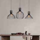 Φωτιστικό οροφής με ράγα σε μαύρο χρώμα και μοντέρνο στυλ. Διαθέτει 3 καπέλα με μεταλλικό πλέγμα και διαφορετικά σχήματα. Υπάρχει δυνατότητα αυξομείωσης του συνολικού ύψους και του σχήματος του φωτιστικού έως 124εκ. μέσω των καλωδίων ανάρτησης. Τύπος ντουί: 3xE27 και θέσεις για 3 λαμπτήρες έως 40W έκαστος (δεν συμπεριλαμβάνονται).