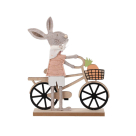 Επιτραπέζια διακοσμητική φιγούρα λαγός με ποδήλατο. Είναι κατασκευασμένος από ξύλο σε φυσικό χρώμα με υφασμάτινες λεπτομέρειες σε λευκό-σομόν χρώμα. Τοποθετήστε τον στο σαλόνι, στην κουζίνα ή όπου αλλού θέλετε να δημιουργήσετε μια πασχαλινή διακόσμηση.