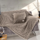 Σετ γούνινο διακοσμητικό ριχτάρι καναπέ και διακοσμητική μαξιλαροθήκη σε μπεζ χρώμα με ανάγλυφη επιφάνεια από την εταιρεία Guy Laroche. Είναι κατασκευασμένα από 100% polyester οικολογική γούνα που προσφέρει πολύ απαλή υφή. Μπορεί να χρησιμοποιηθεί και σαν κουβέρτα καναπέ που θα σας προσφέρει ζεστασιά τις κρύες νύχτες του χειμώνα και παράλληλα προστασία για τους καναπέδες σας.